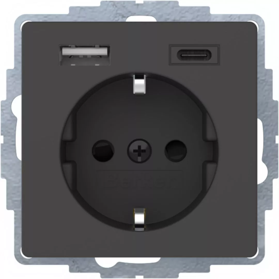 Q.x Gniazdo SCHUKO z ładowarką USB A+C 2.4/3.0 A; samozaciski; antracyt aksamit