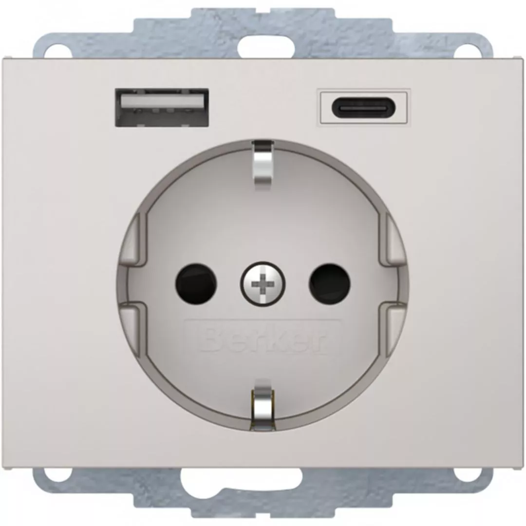 K.5 Gniazdo SCHUKO z ładowarką USB A+C 2.4/3.0 A; samozaciski; stal szlachetna