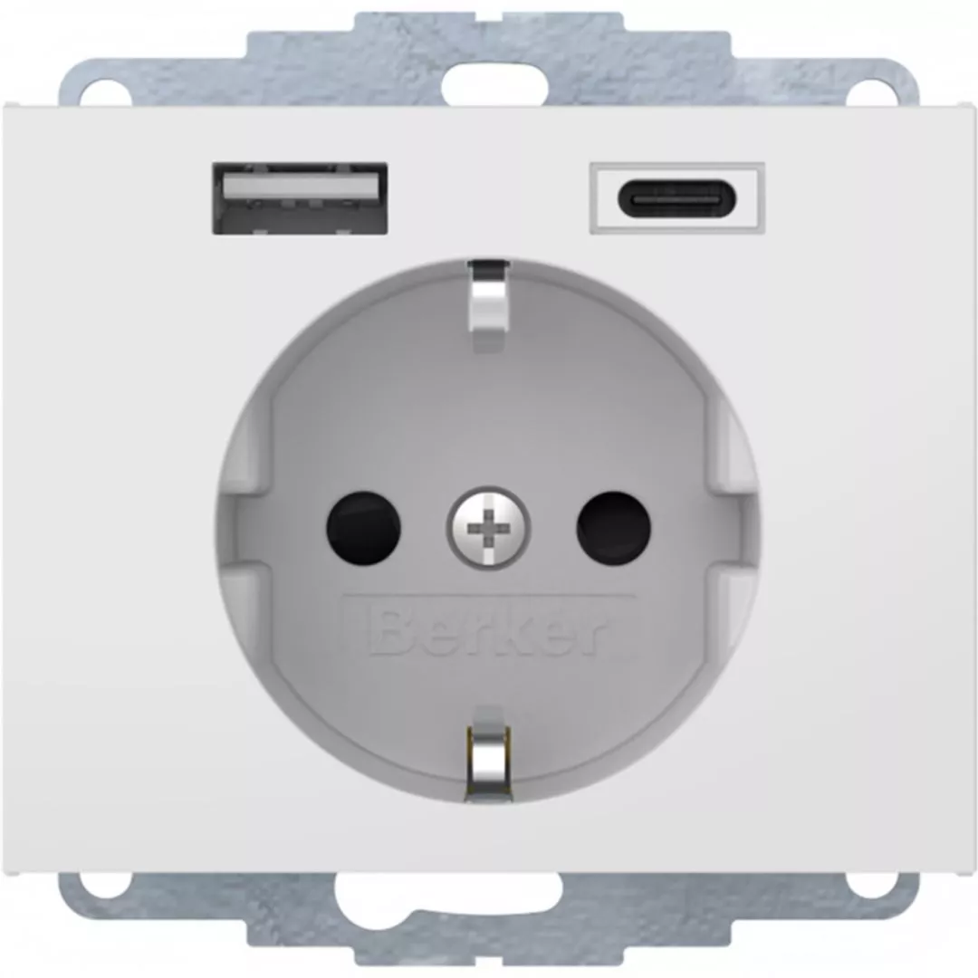 K.1 Gniazdo SCHUKO z ładowarką USB A+C 2.4/3.0 A; samozaciski; biały połysk