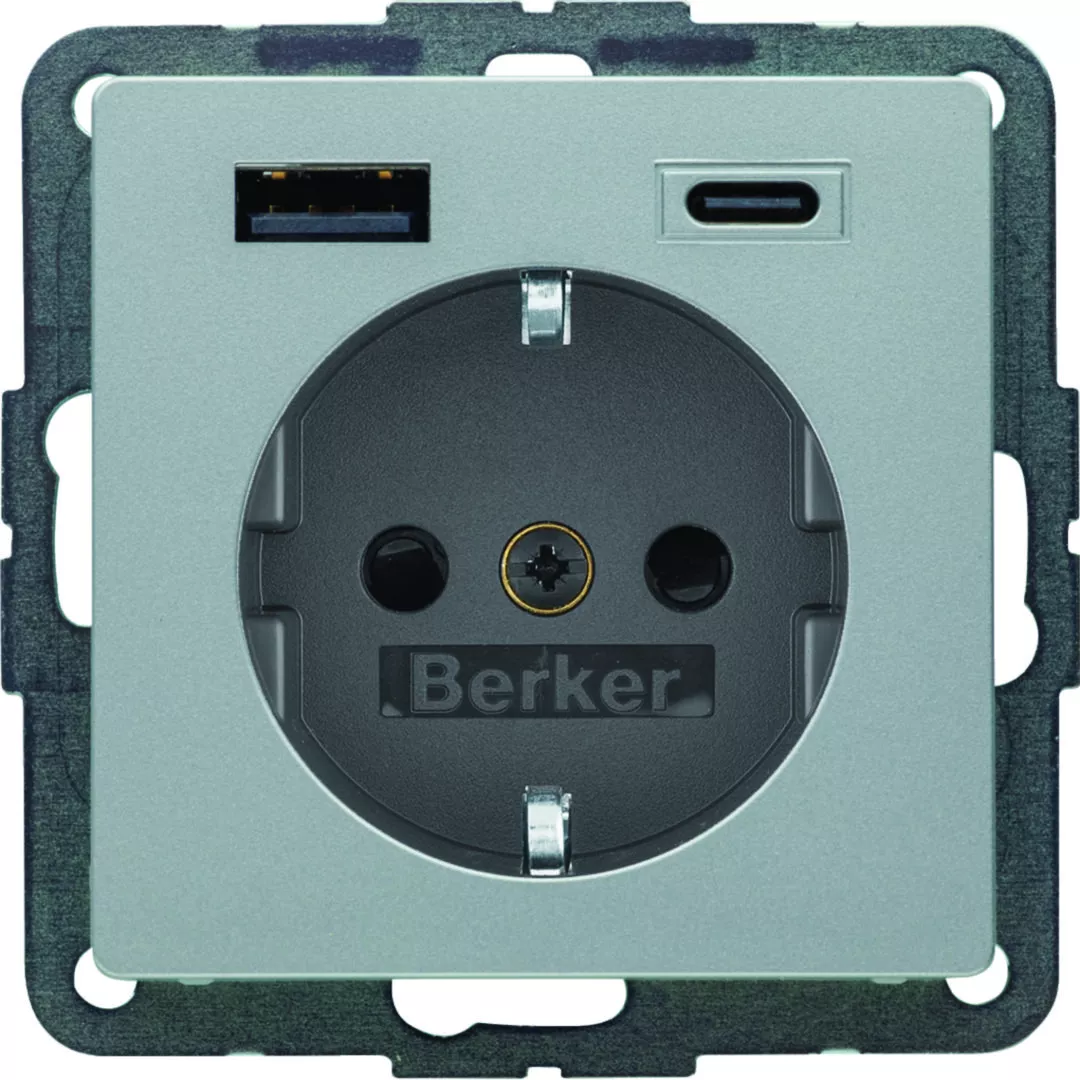 Q.x Gniazdo SCHUKO z ładowarką USB A+C 20W PD, alu aksamit
