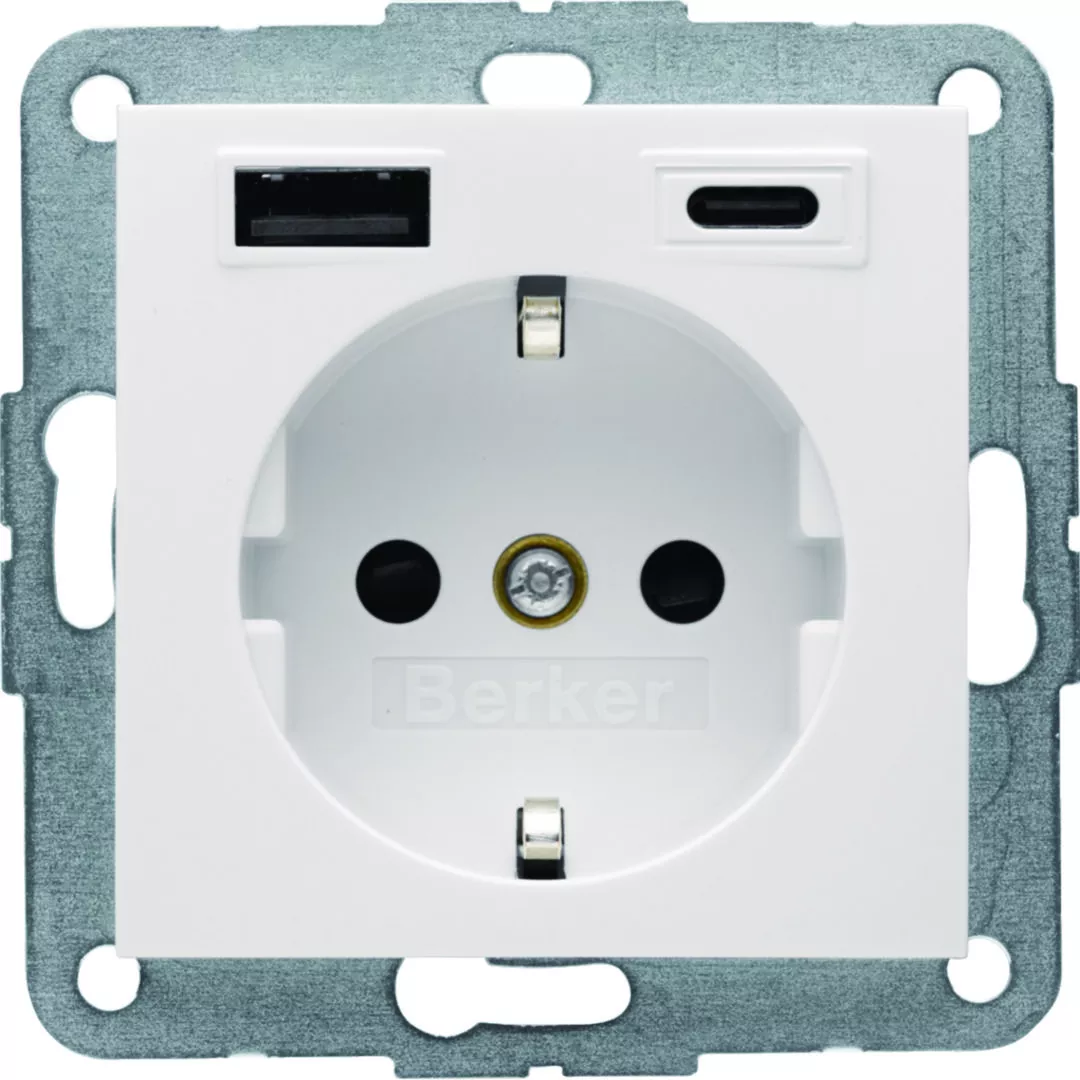 B.Kwadrat Gniazdo SCHUKO z ładowarką USB A+C 20W PD, krem połysk