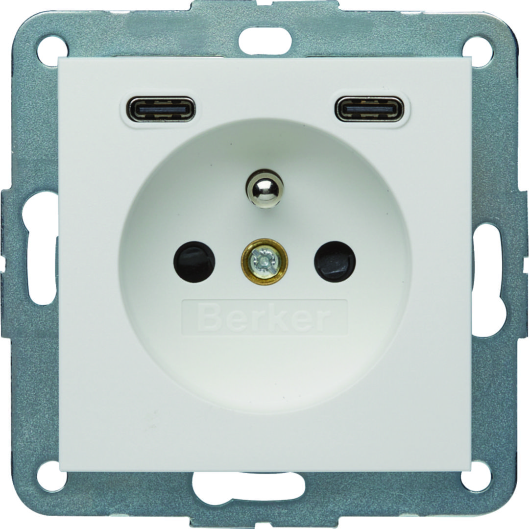 B.x Gniazdo z uziemieniem z ładowarką USB C+C 20W PD, biały mat