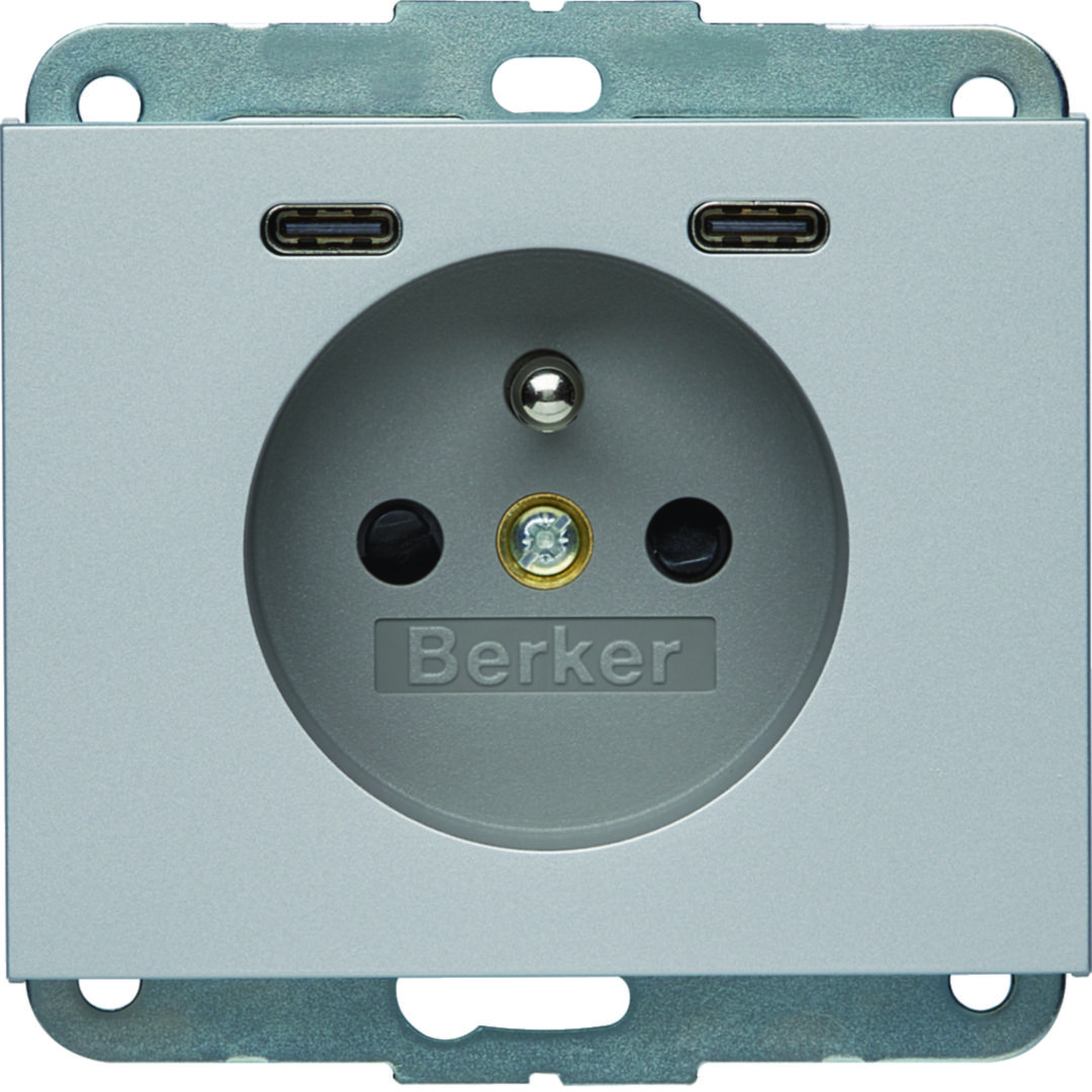 K.5 Gniazdo z uziemieniem z ładowarką USB C+C 20W PD, alu mat lakierowany