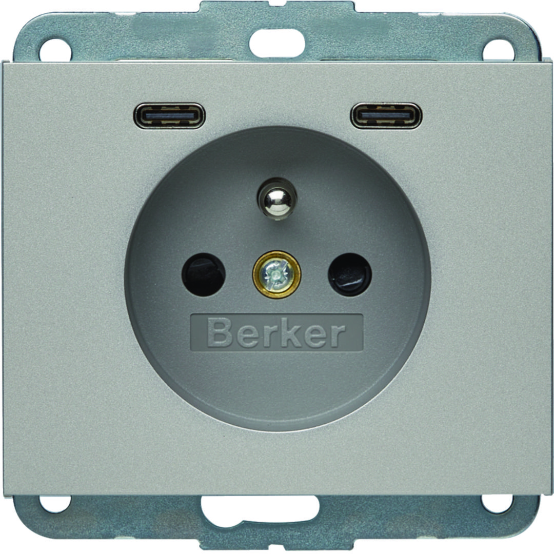 K.5 Gniazdo z uziemieniem z ładowarką USB C+C 20W PD, stal szlachetna lakierow