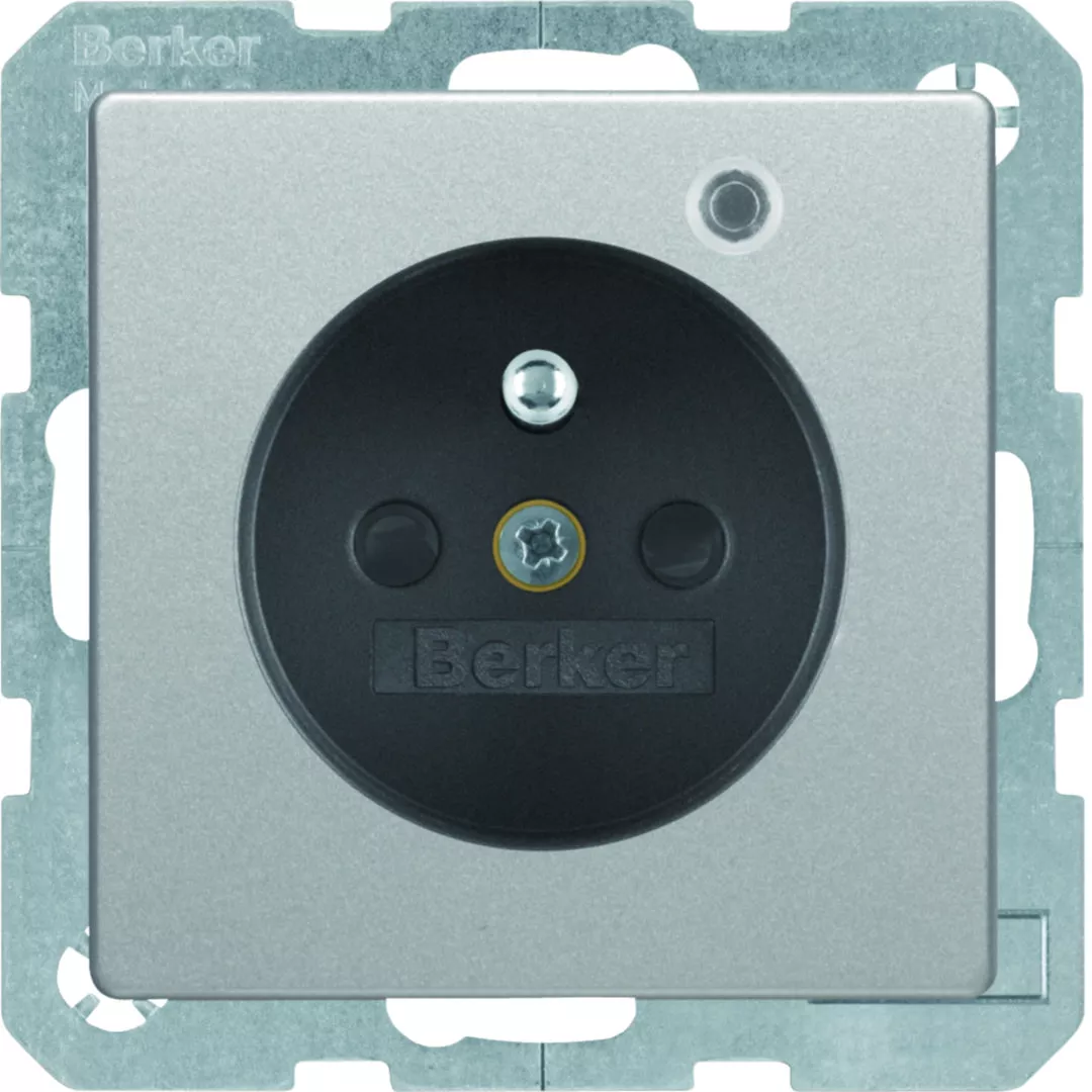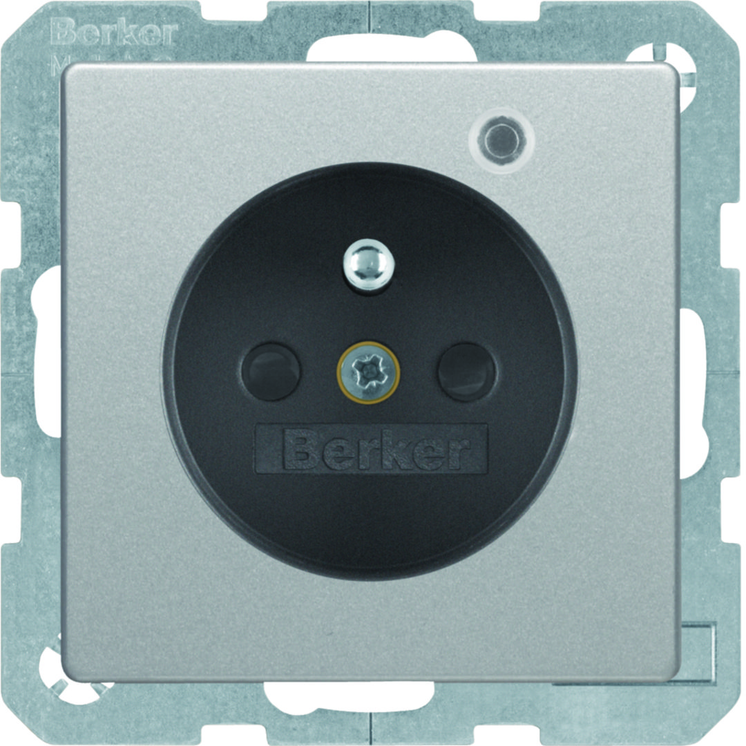 Q.x Gniazdo z uz. z diodą kontrolną LED, z podwyż. ochr. st., alu aks, lak