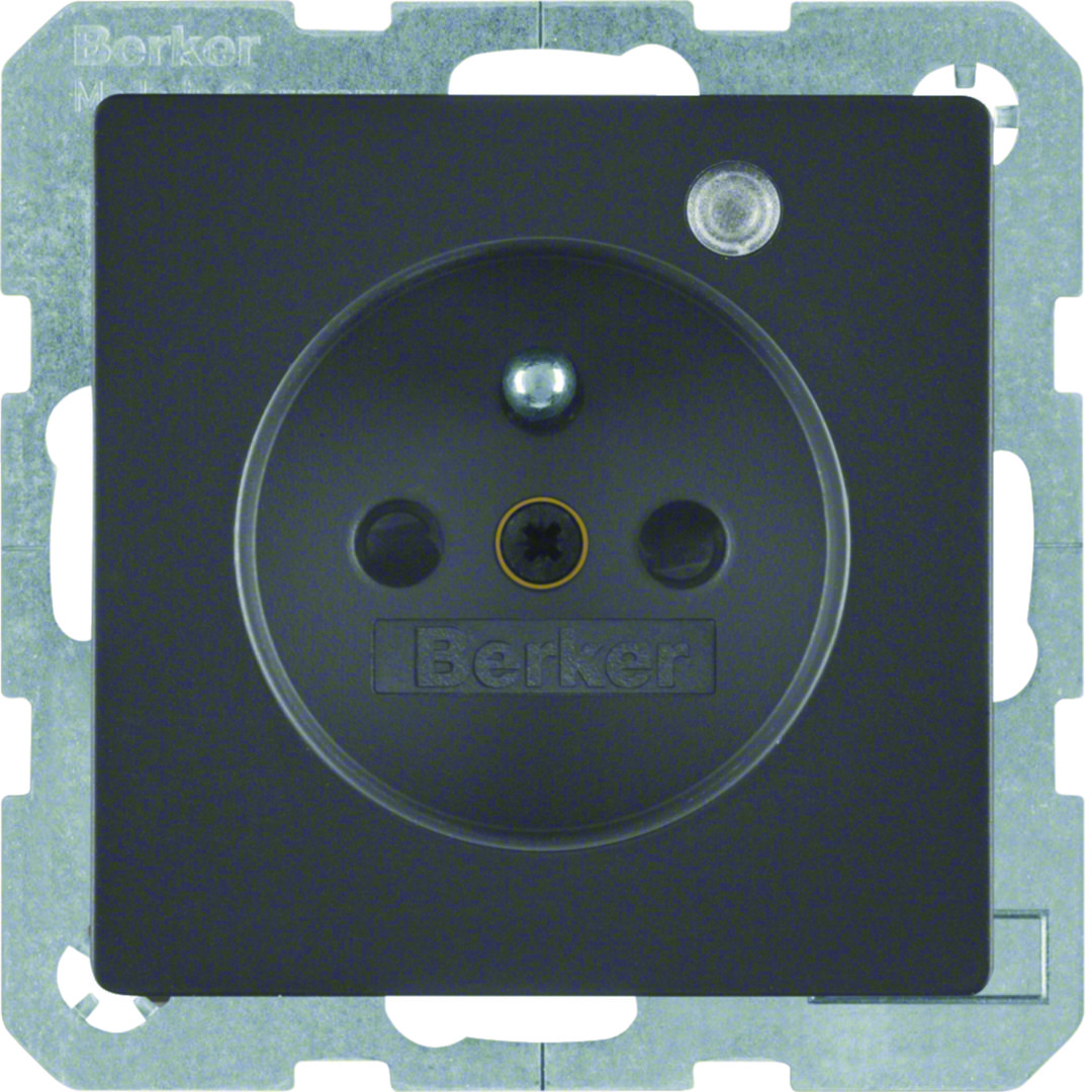 Q.x Gniazdo z uz. z diodą kontrolną LED, z podwyż. ochr. st., ant, aks lak