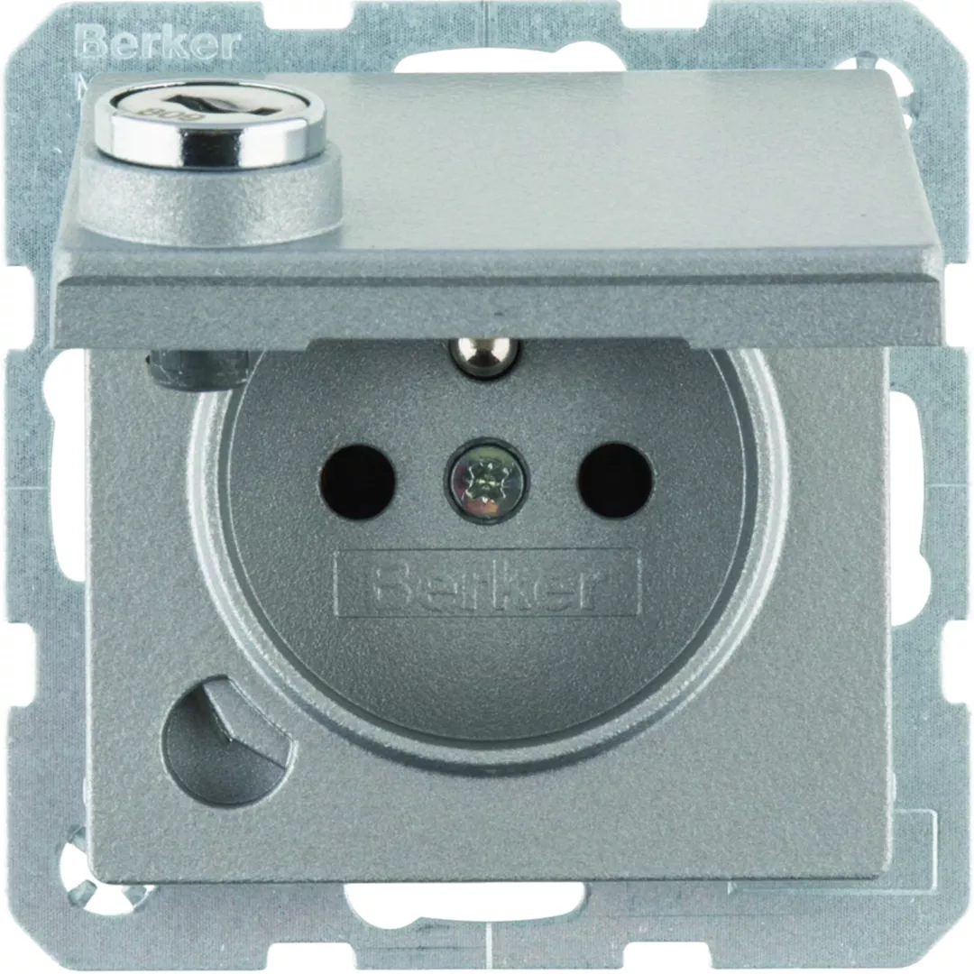 Q.x Gniazdo z uziemieniem z pokrywą i zamkiem, alu aksamit