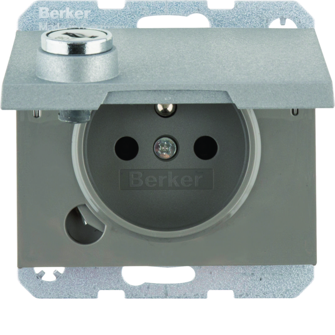 K.5 Gniazdo z uziemieniem z pokrywą i zamkiem, aluminium lakierowane