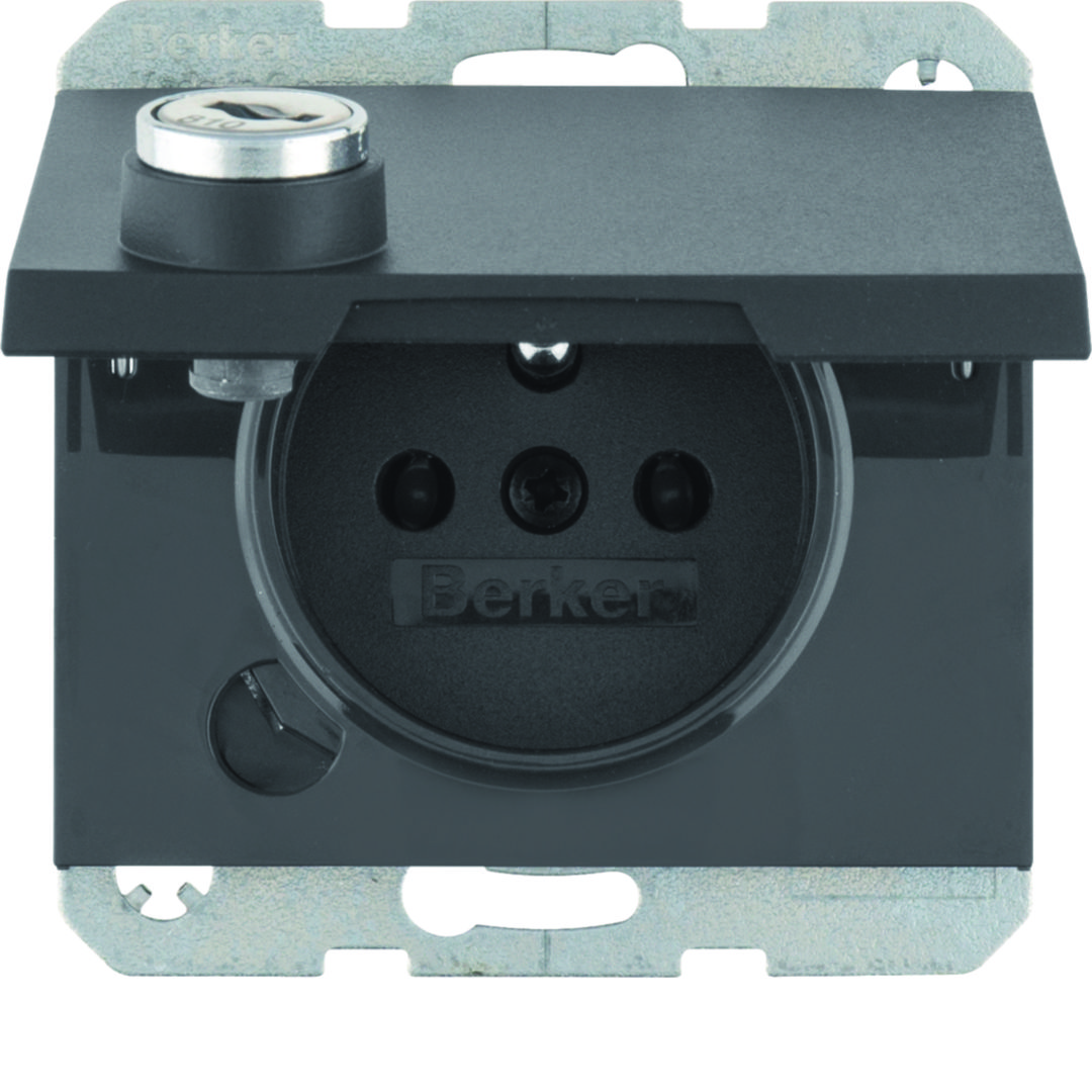 K.1 Gniazdo z uziemieniem z pokrywą i zamkiem, antracyt mat