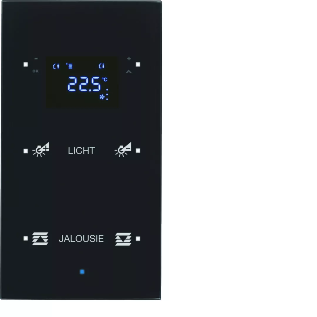 KNX TS Sensor dotykowy 2-kr z reg. temp., konfigurowalny, szkło, czarny