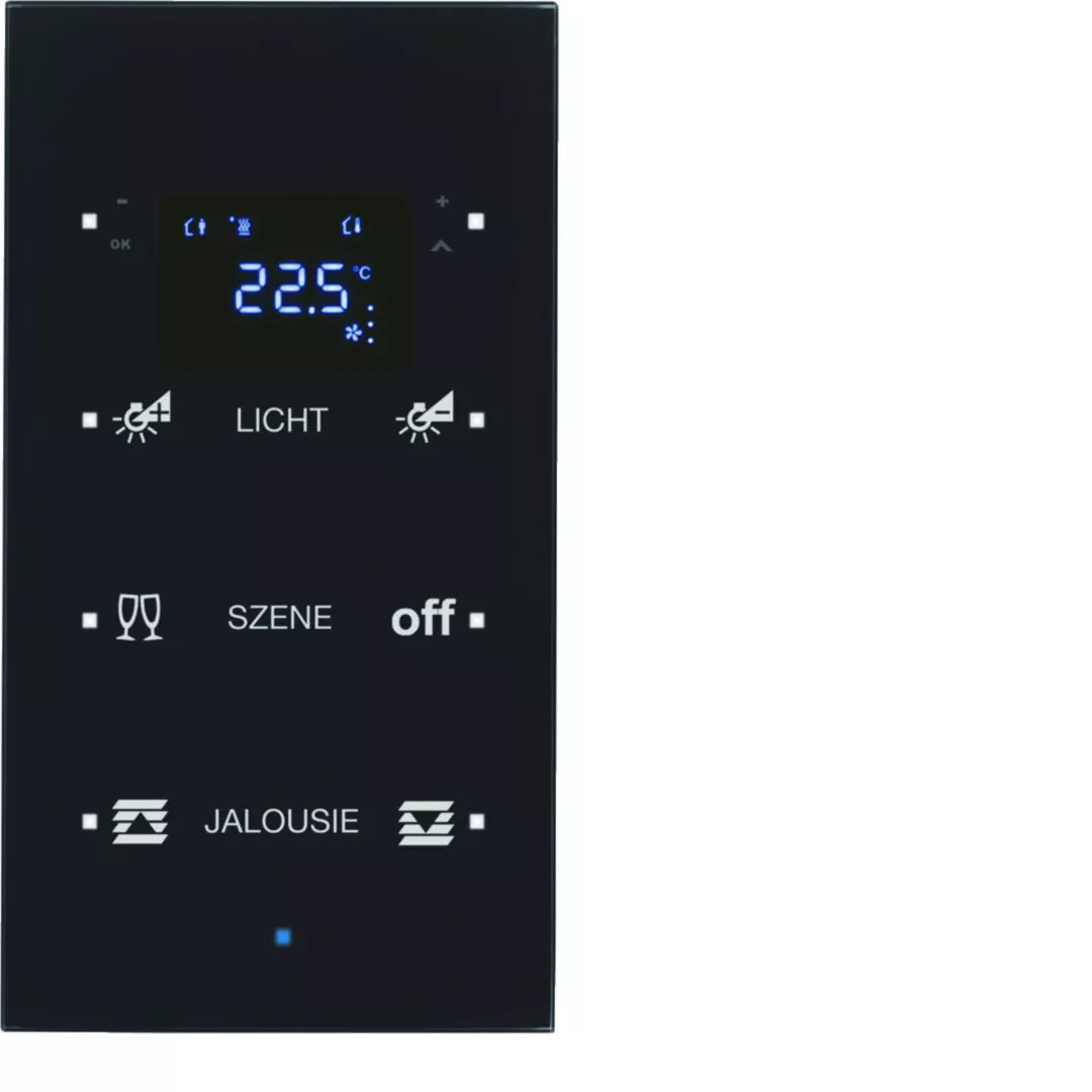 KNX TS Sensor dotykowy 3-kr z reg. temp., konfigurowalny, szkło, czarny