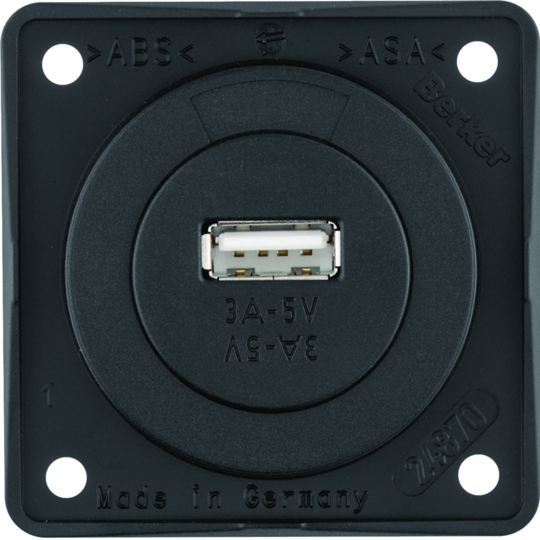 Integro Gniazdo USB ładowania pojedyncze, 12V, 3A; czarny mat, mechanizm czarny
