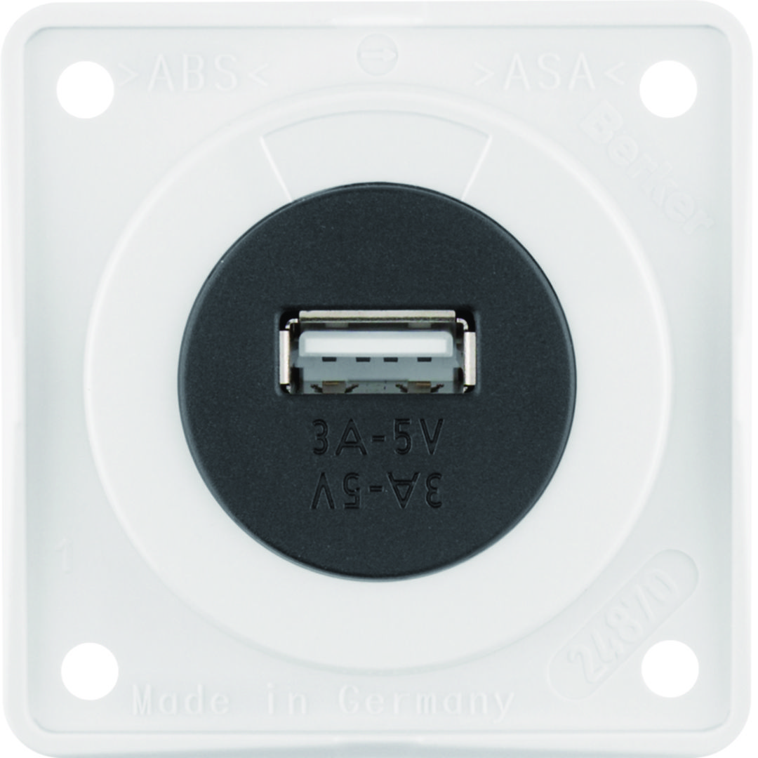 Integro Gniazdo USB ładowania pojedyncze 12V, 3A; biały połysk, mechanizm czarny