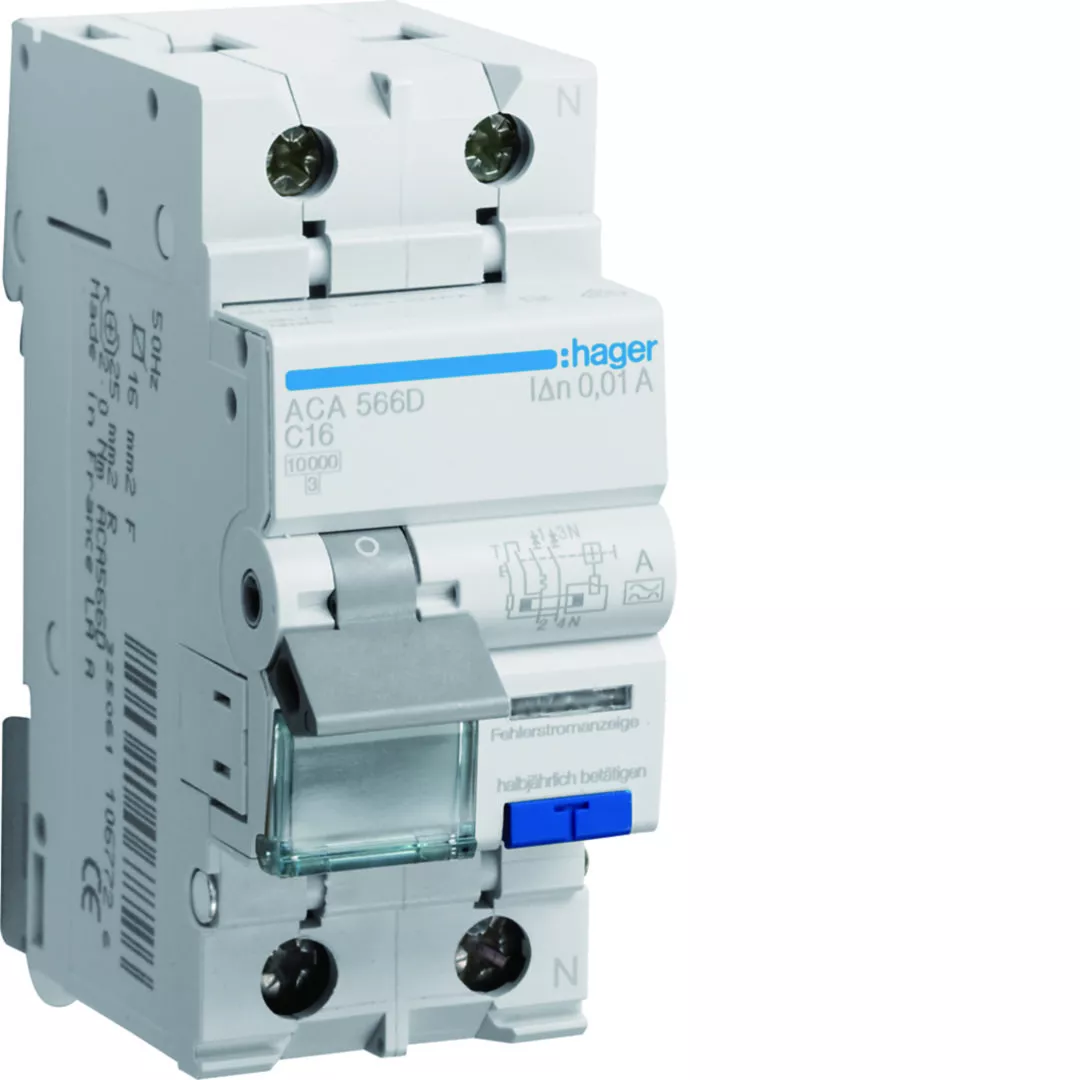 RCBO Wyłącznik różnicowoprądowy z członem nadprądowym 1P+N 10kA C 16A/10mA Typ A