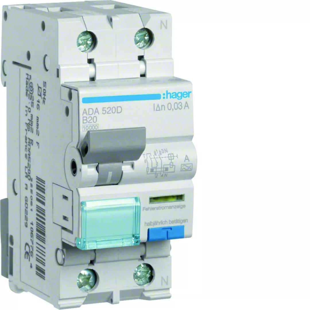 RCBO Wyłącznik różnicowoprądowy z członem nadprądowym 1P+N 10kA B 20A/30mA Typ A