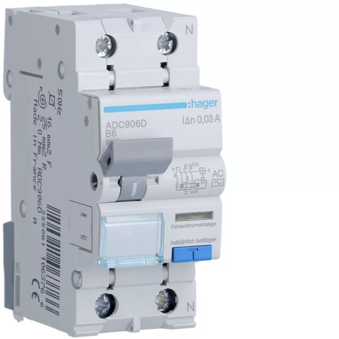 RCBO Wyłącznik różnicowoprądowy z członem nadprądowym 1P+N 6kA B 6A/30mA Typ AC