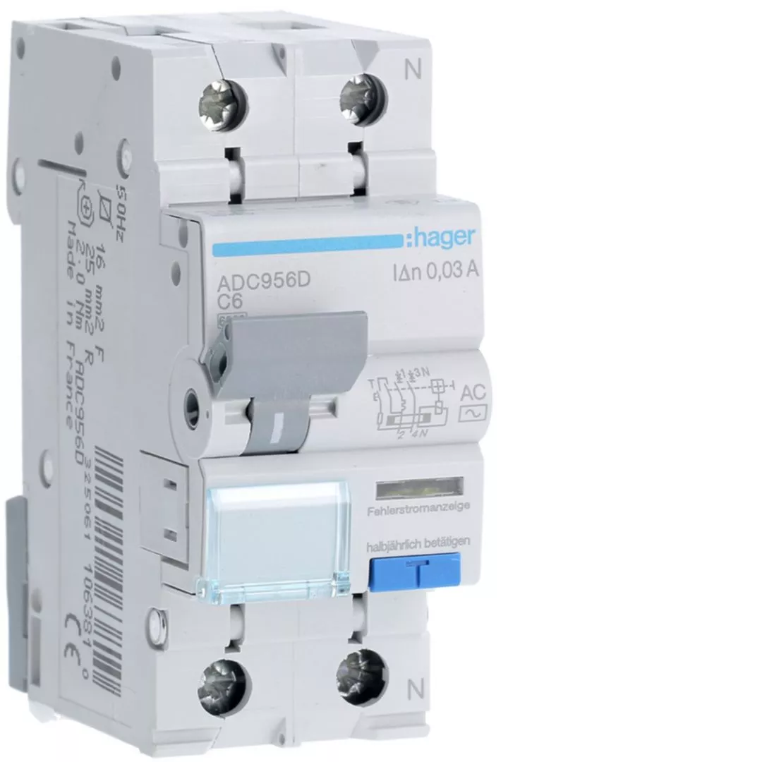 RCBO Wyłącznik różnicowoprądowy z członem nadprądowym 1P+N 6kA C 6A/30mA Typ AC