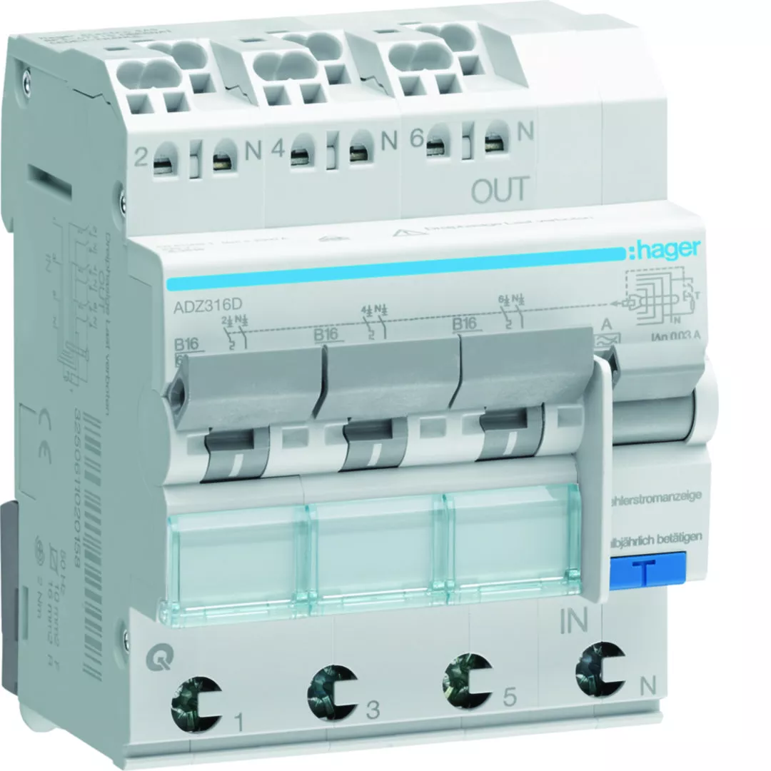 RCBO Wyłącznik różnicowoprądowy z czł. nadpr. 3x1P+N 6kA B 16A/30mA Typ A QC/QBB