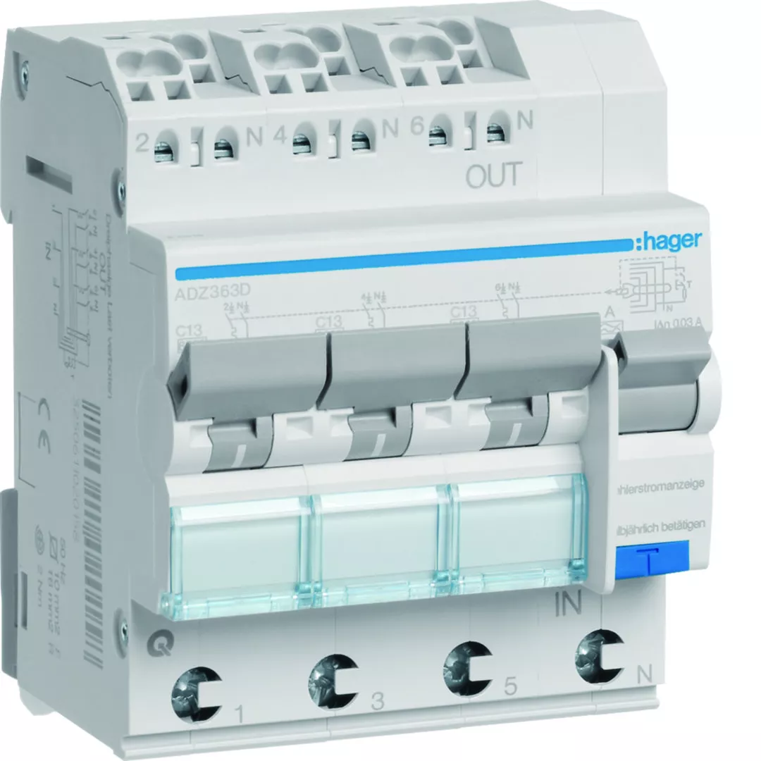 RCBO Wyłącznik różnicowoprądowy z czł. nadpr. 3x1P+N 6kA C 13A/30mA Typ A QC/QBB