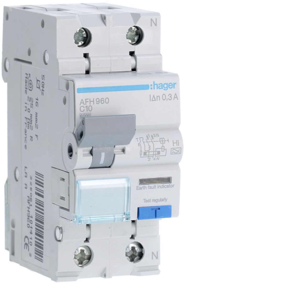 RCBO Wył. różnicowopr. krótkozwł. z czł.nadpr. 1P+N 6kA C 10A/300mA Typ A-HI