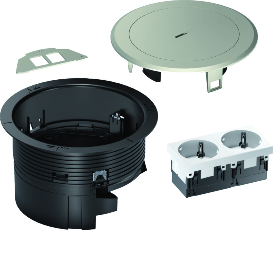 tehalit.VE-EE Zestaw pokrywa+puszka R02 2xM45 schuko pł Keyst Typ1 o.cynk srebro