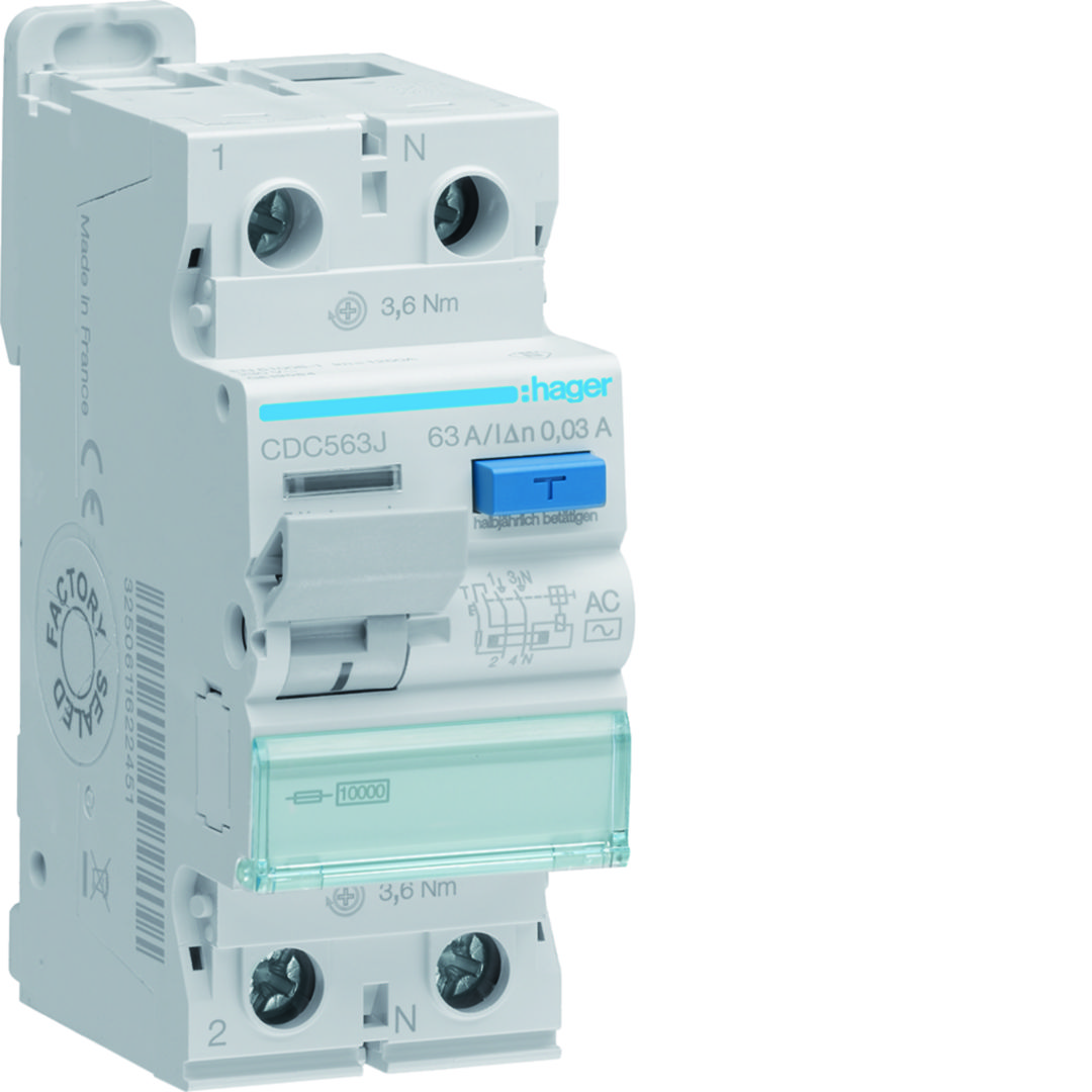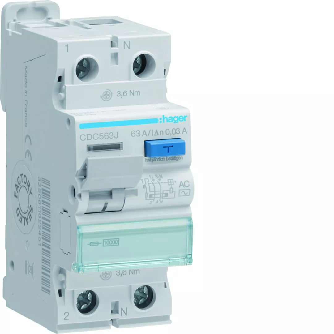 RCCB Wyłącznik różnicowoprądowy 1P+N 63A 30mA 10kA AC