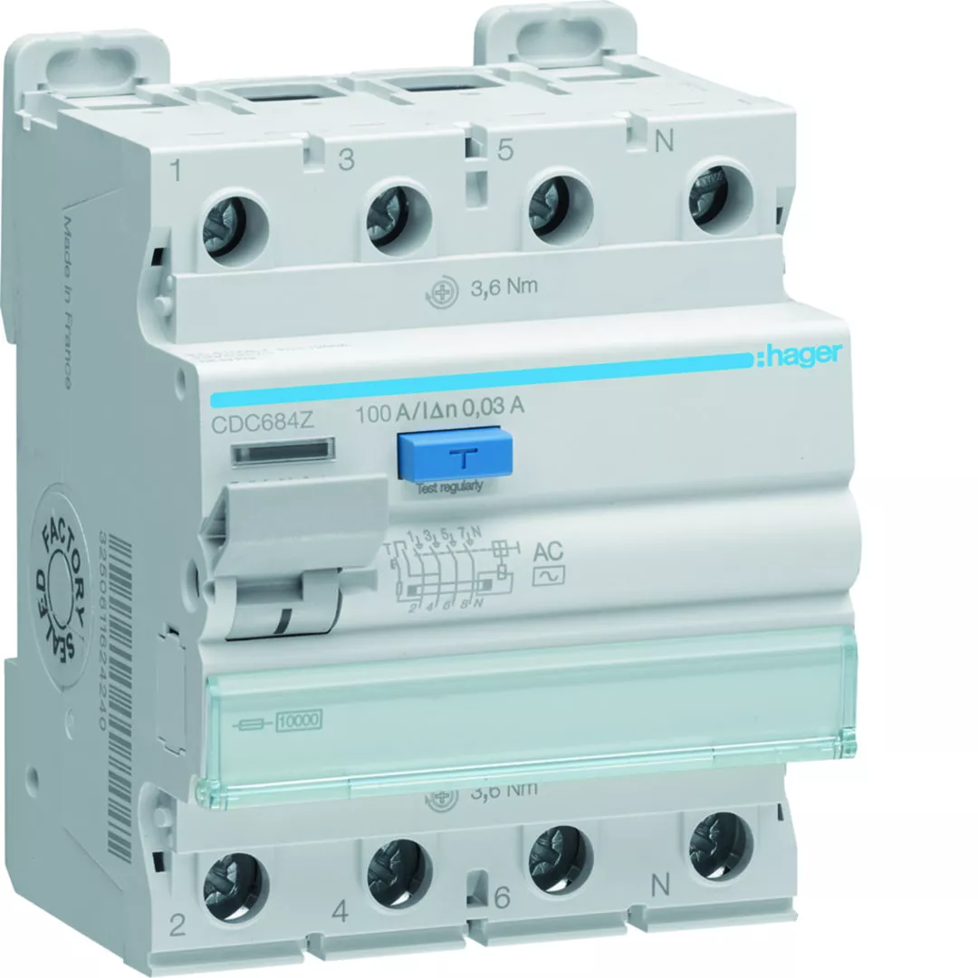RCCB Wyłącznik różnicowoprądowy 3P+N 100A 30mA 10kA AC