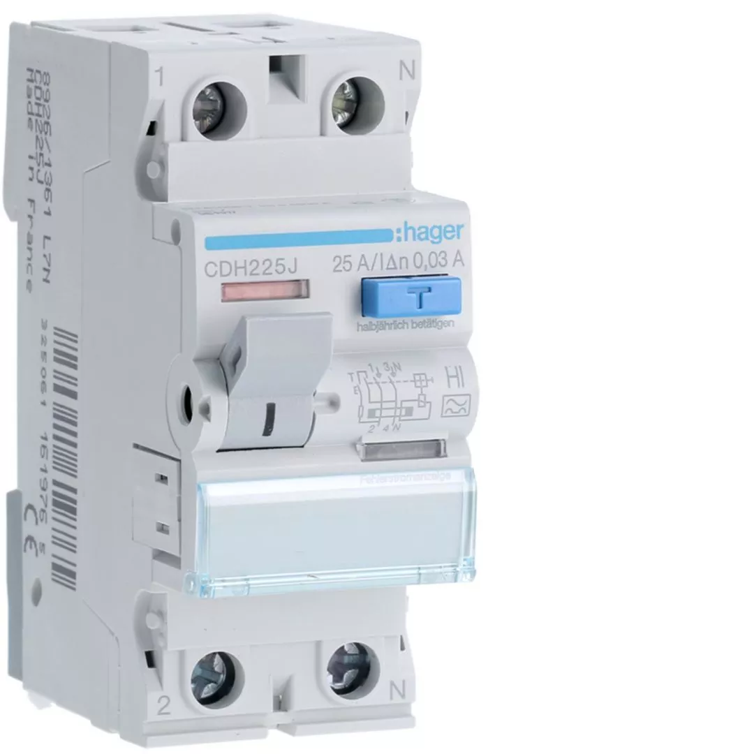 RCCB Wyłącznik różnicowoprądowy 1P+N 25A 30mA 6kA A HI