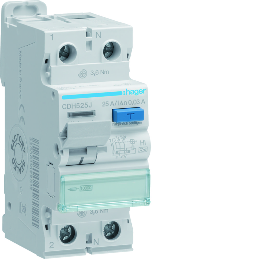 RCCB Wyłącznik różnicowoprądowy 1P+N 25A 30mA 10kA A HI