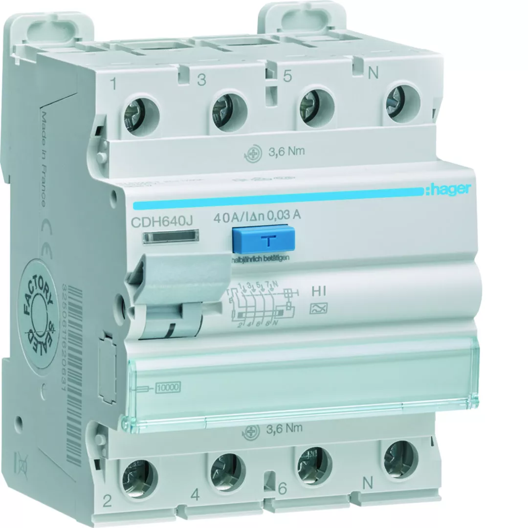 RCCB Wyłącznik różnicowoprądowy 3P+N 40A 30mA 10kA A HI