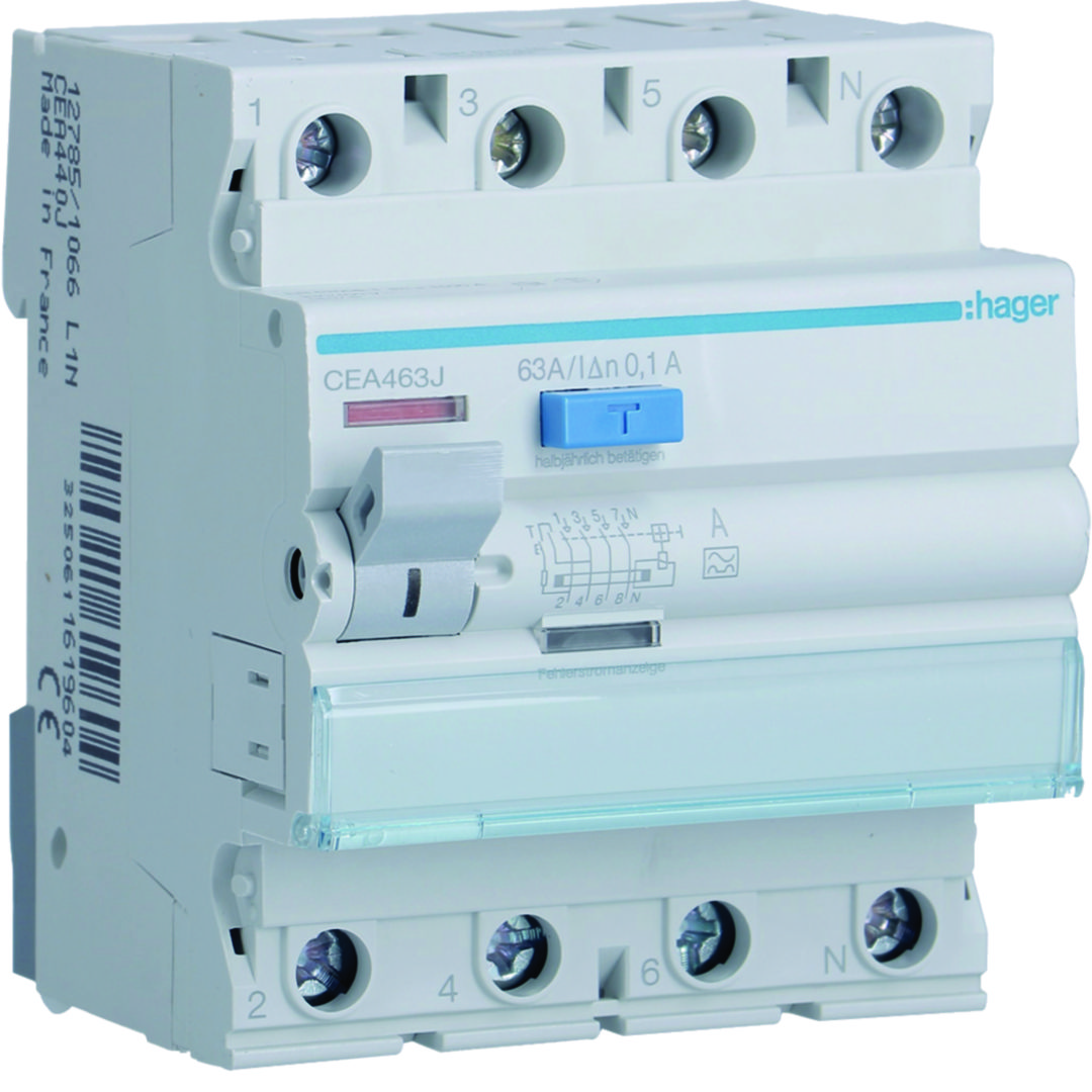 RCCB Wyłącznik różnicowoprądowy 3P+N 63A 100mA 6kA A