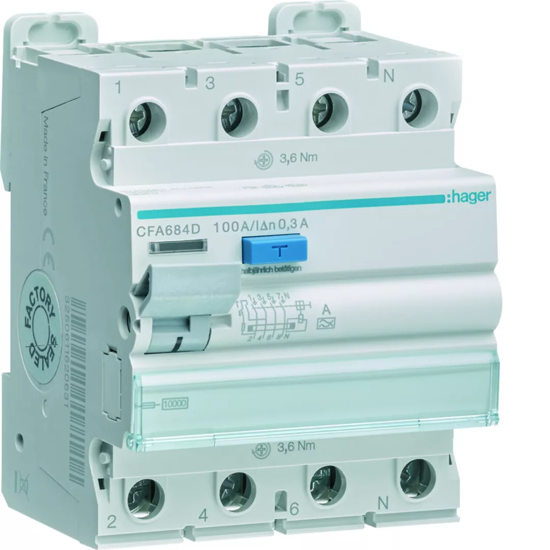 RCCB Wyłącznik różnicowoprądowy 3P+N 100A 300mA 10kA A