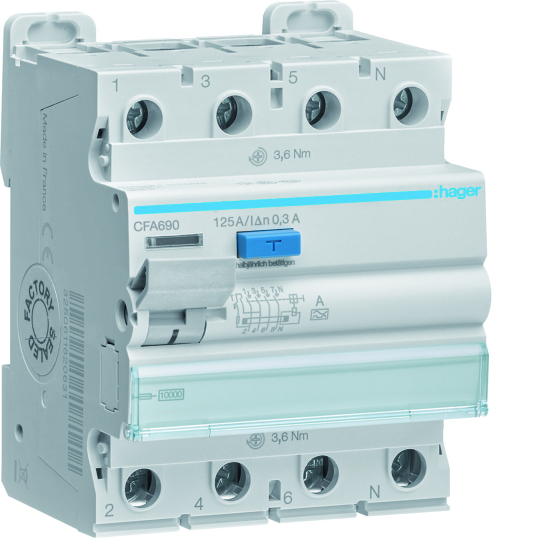 RCCB Wyłącznik różnicowoprądowy 3P+N 125A 300mA 10kA A