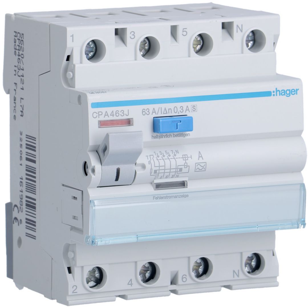 RCCB Wyłącznik różnicowoprądowy 3P+N 63A 300mA 6kA A S