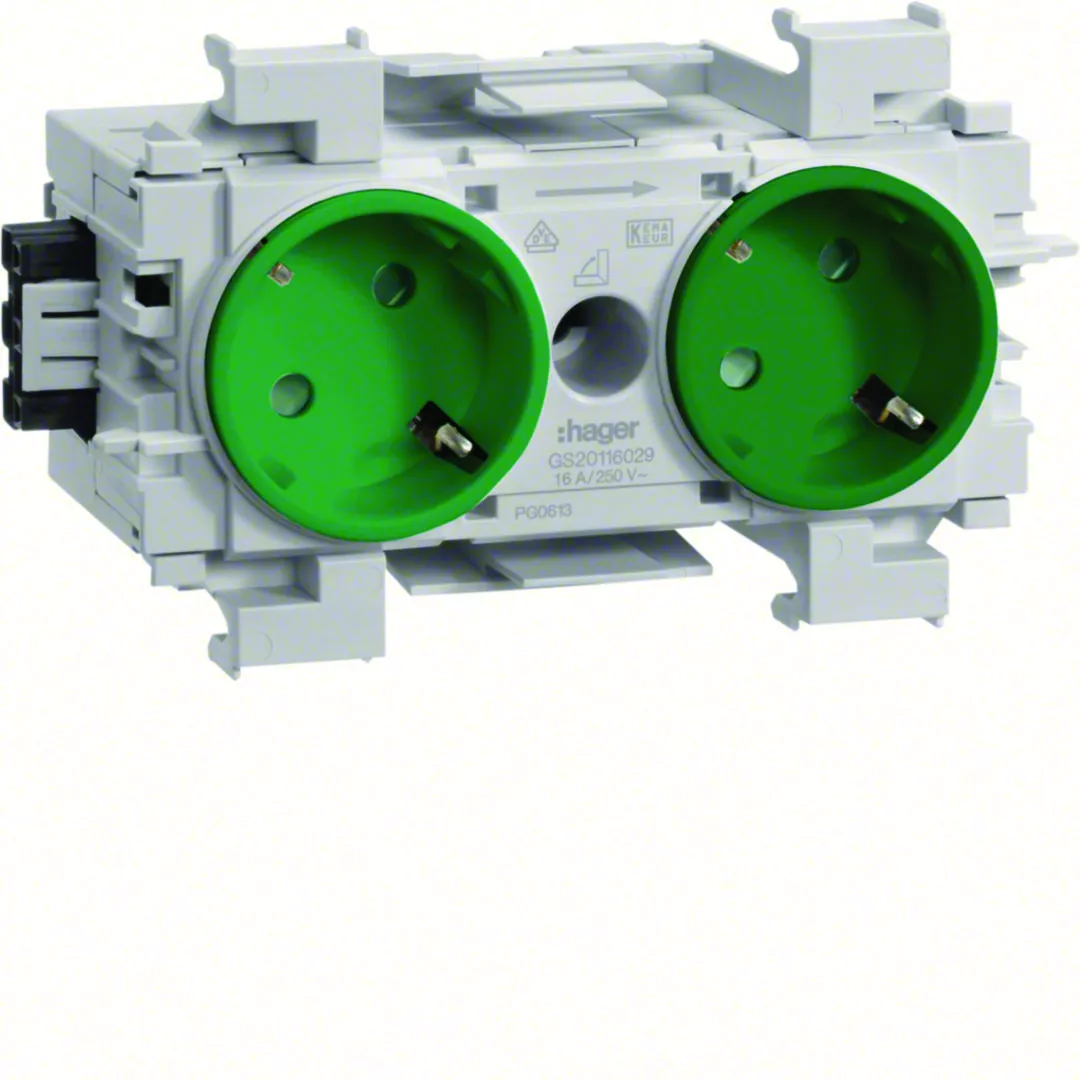 tehalit.WA Gniazdo SCHUKO 2-krotne 45st. WAGO montaż krawędziowy zielony