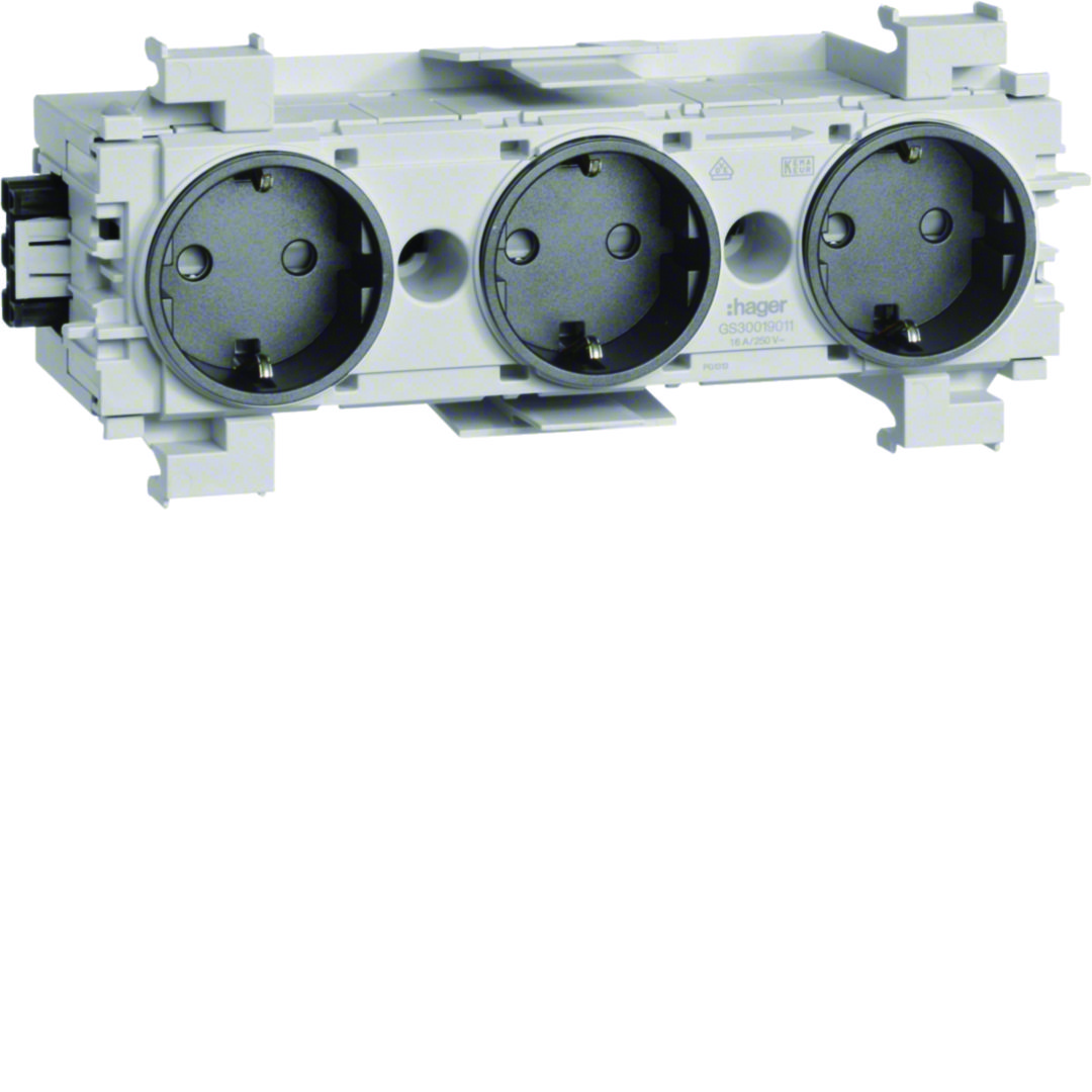 tehalit.WA Gniazdo SCHUKO 3-krotne połączenie WAGO montaż krawędziowy czarny