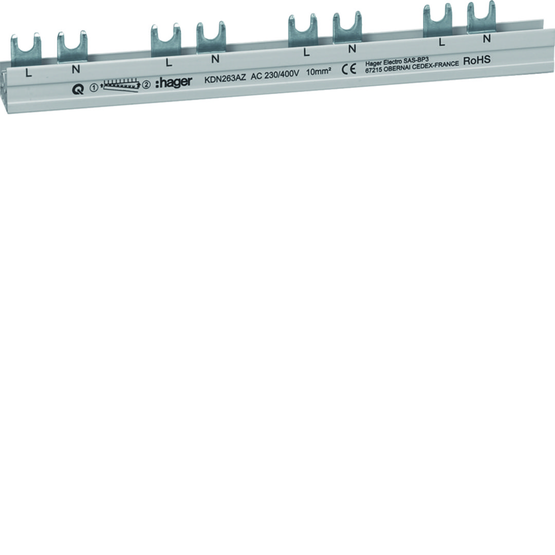 Szyna grzebieniowa widełkowa pozioma L+N+przerwa 1M 10mm2 63A 12M