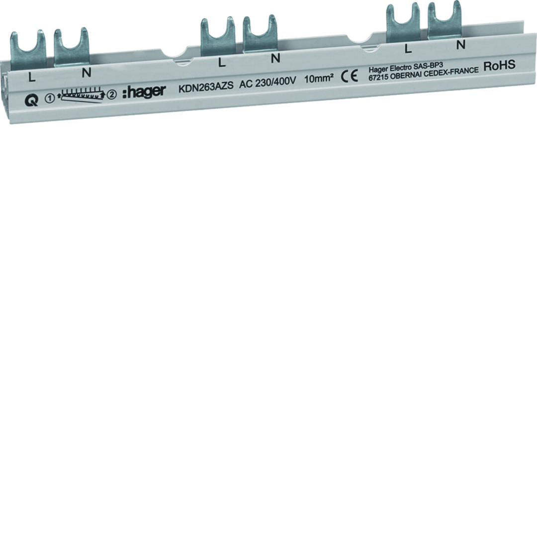 Szyna grzebieniowa widełkowa pozioma LN przerwa 1M + akc 10mm2 63A 10M