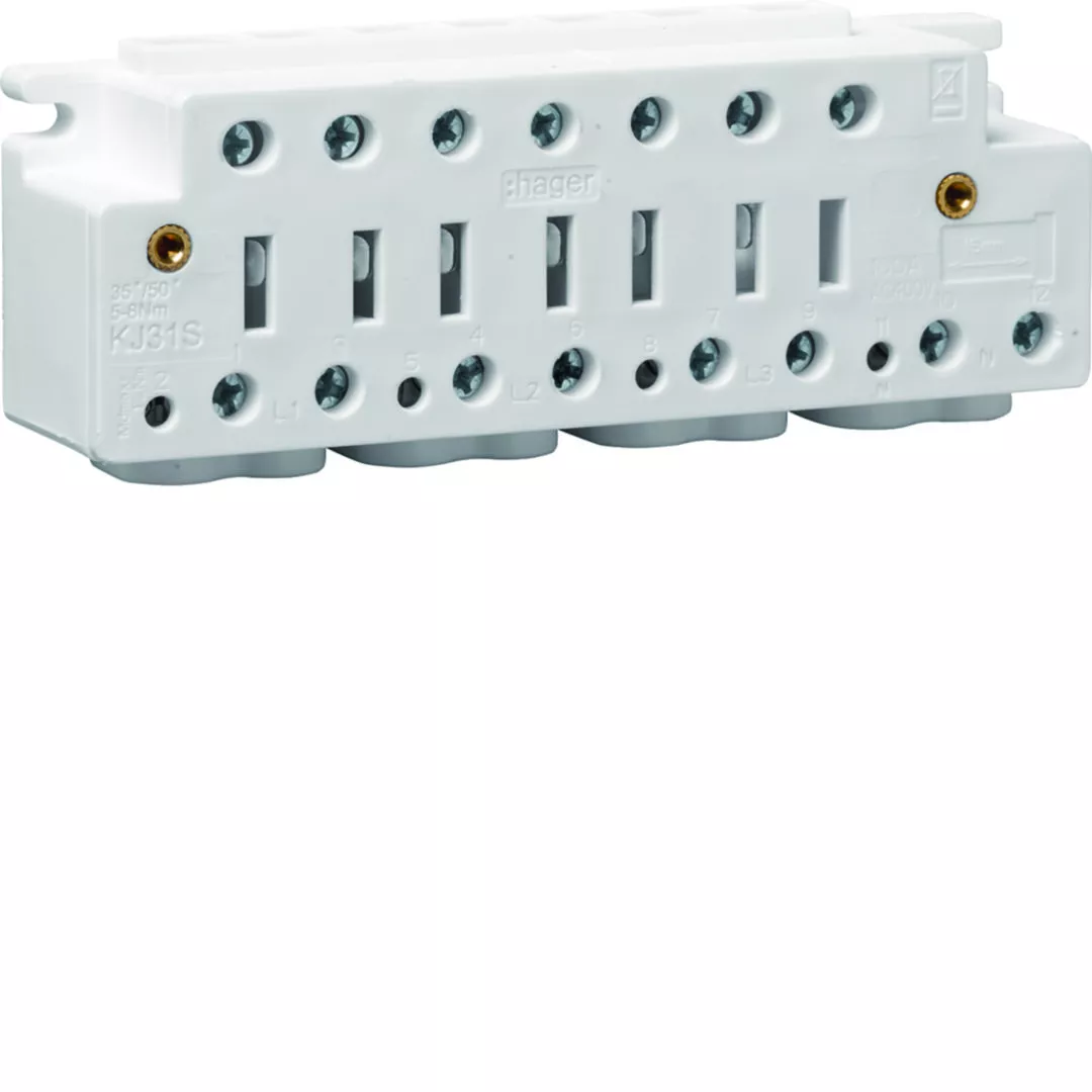 Listwa zaciskowa licznikowa 100A 3+N z zaciskami napięciowymi z pokrywą plomb.
