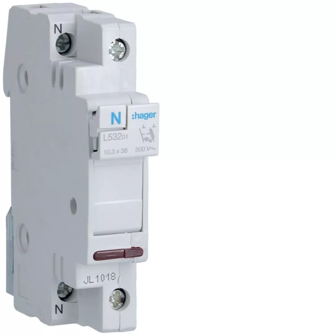 Mod. podst. bezp. 1P+N z lamp. kontr. 230VAC wkł.bezp.cyl.L38 10x38mm 32A 400VAC