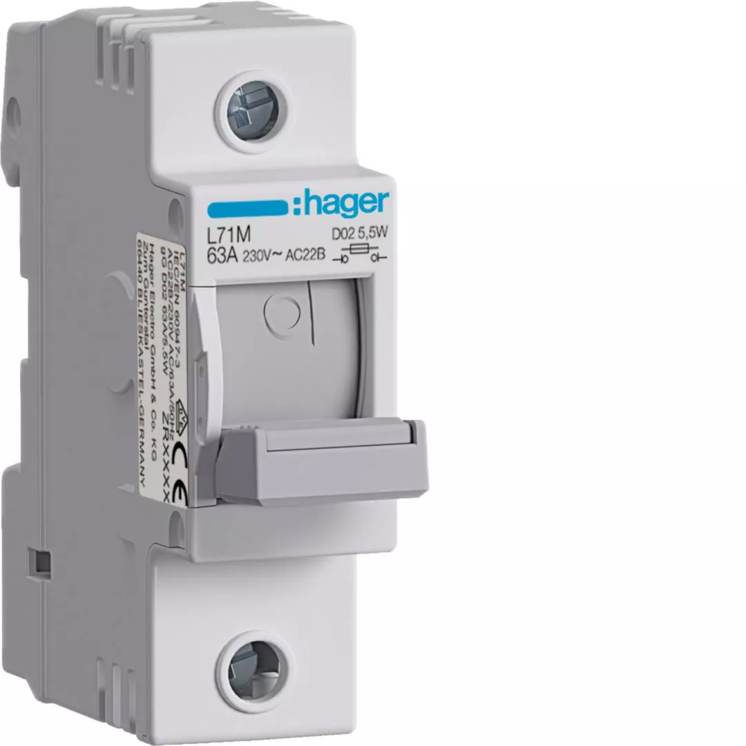 Modułowy rozłącznik bezpiecznikowy poziomy D02 1P 63A 400VAC 110/220VDC
