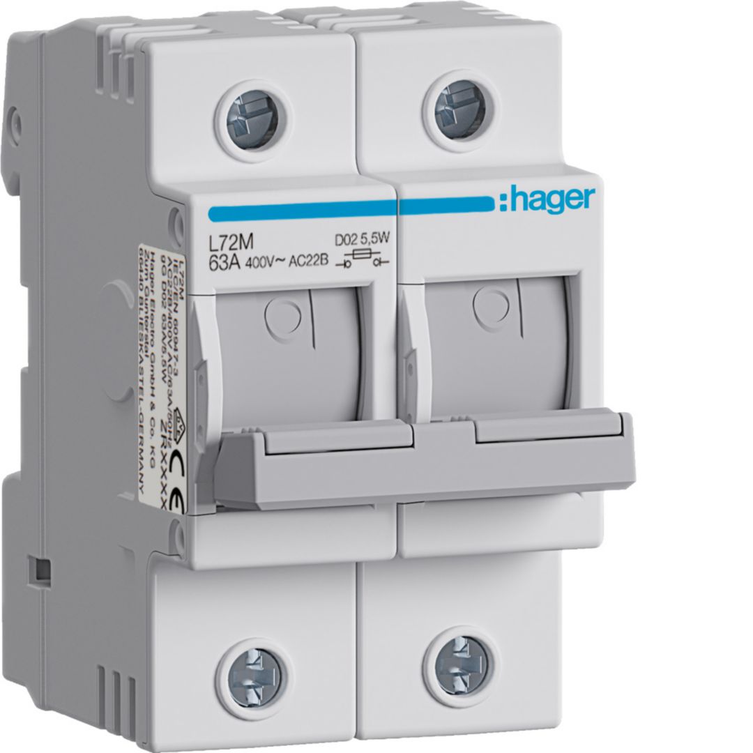 Modułowy rozłącznik bezpiecznikowy poziomy D02 2P 63A 400VAC 110/220VDC