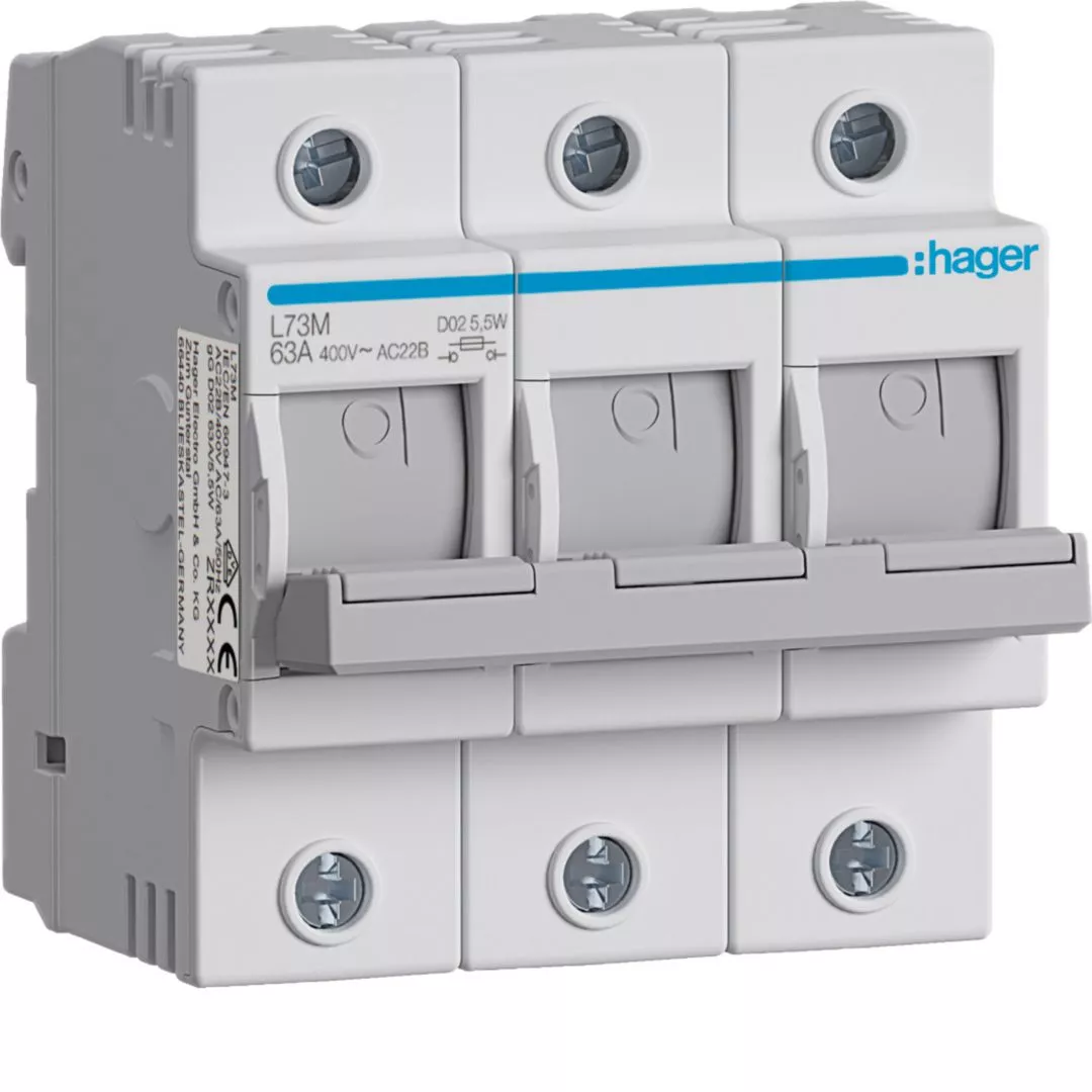 Modułowy rozłącznik bezpiecznikowy poziomy D02 3P 63A 400VAC 110/220VDC