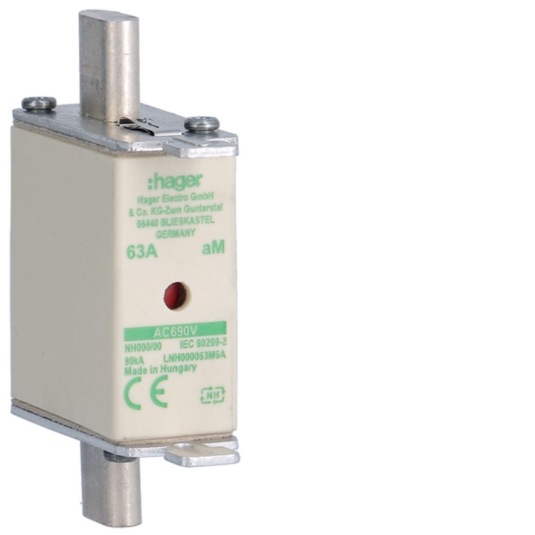 Wkładka bezp. nożowa NH000 wsk.podw. uchwyt nieiz. aM 63A 690VAC