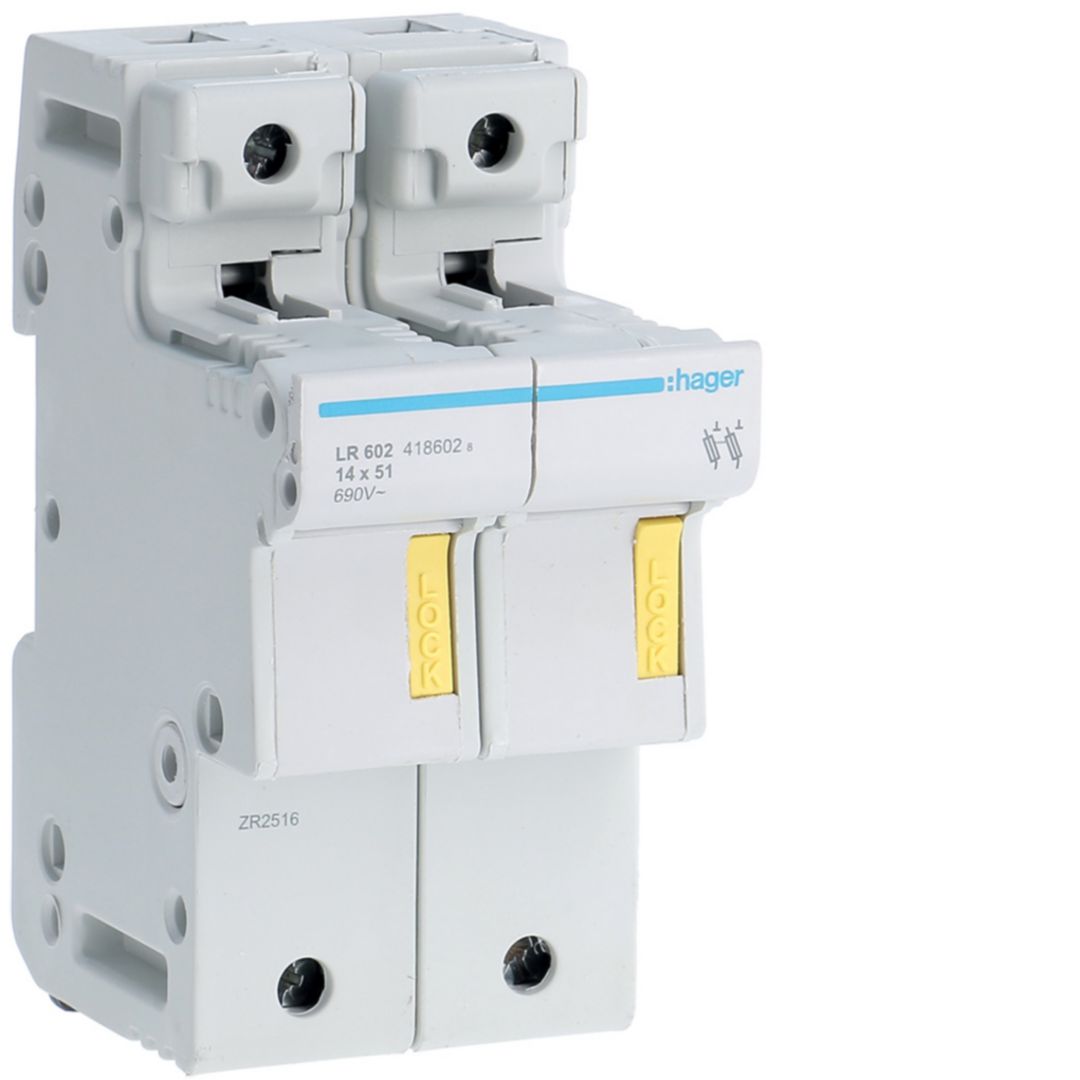 Modułowa podstawa bezpiecznikowa 2P wkł.bezp.cyl.L51 14x51mm 50A 690VAC