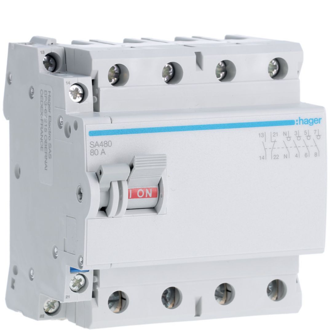 Modułowy rozłącznik izolacyjny z możliwością wyzwalania 4P 80A 400VAC, styk pom.