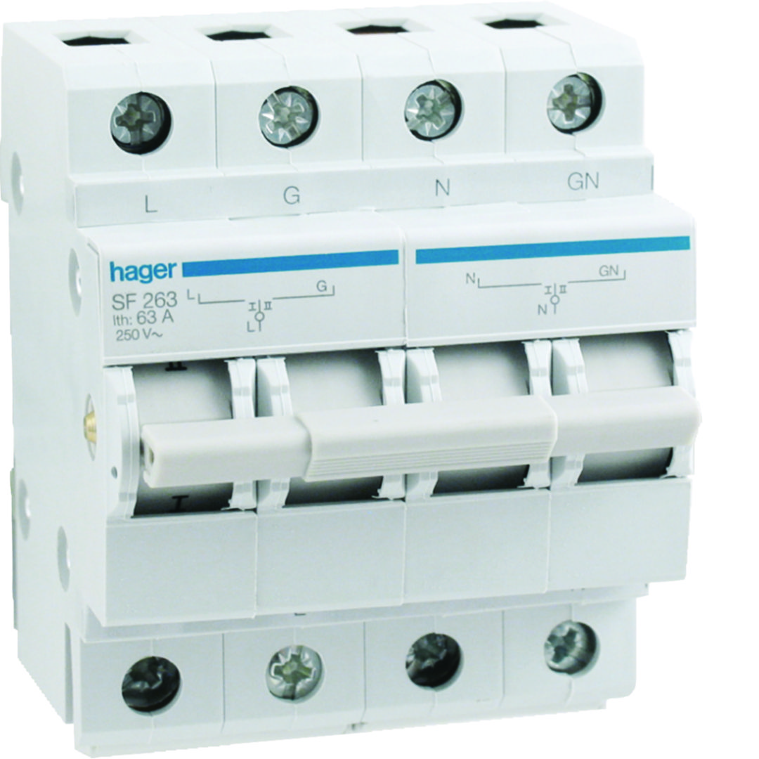 Modułowy przełącznik zasilania 1P+N I-0-II 63A 230VAC