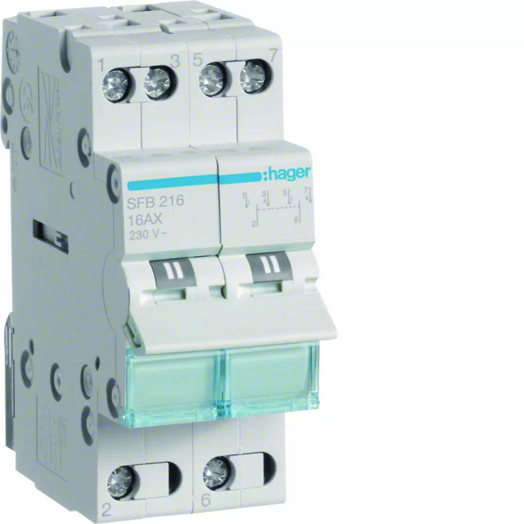 Modułowy przełącznik instalacyjny I-0-II punkt wspólny od dołu 2P 16A 230VAC
