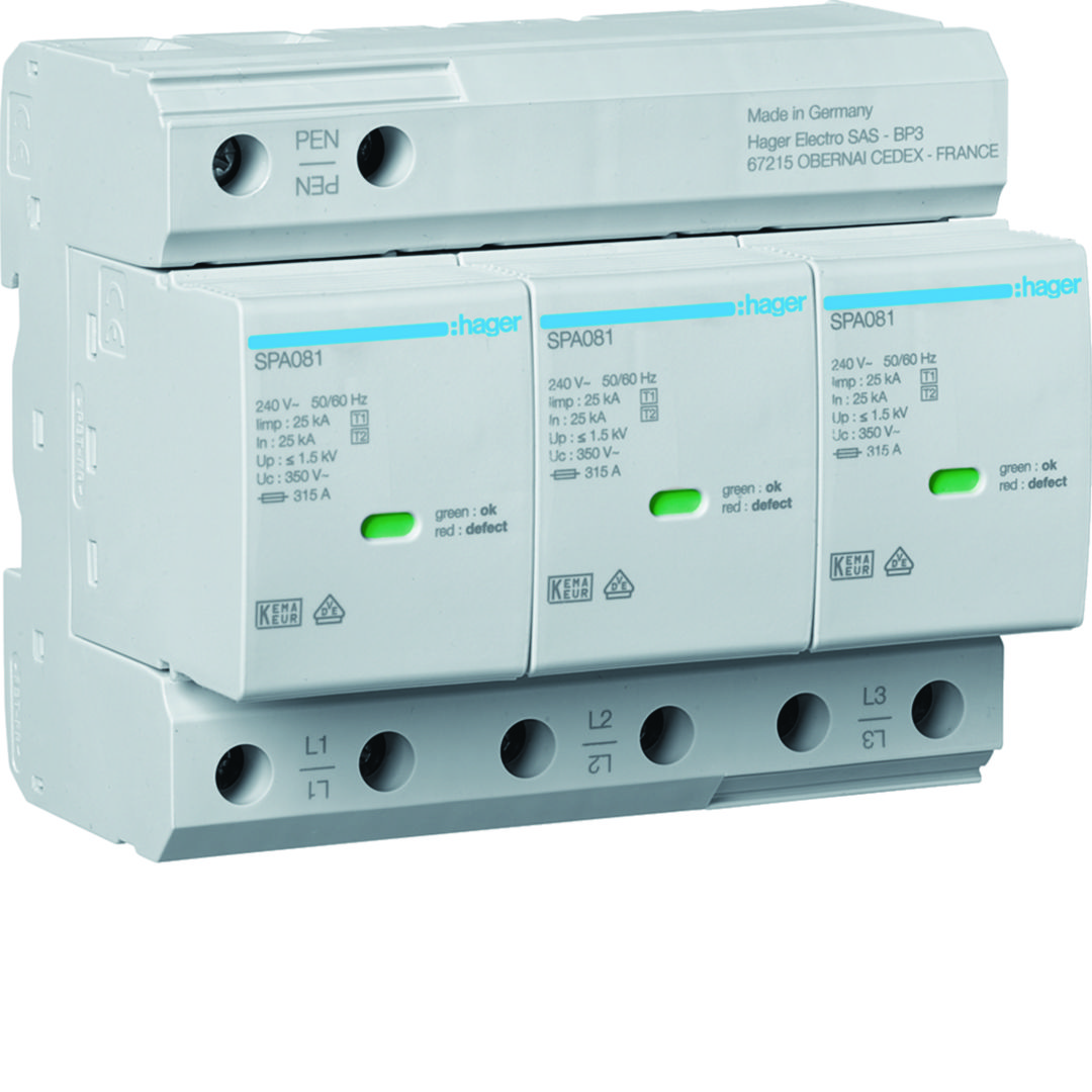 SPD T1+T2 3P sieć TN-C Iimp=75kA Up≤1,5kV styk