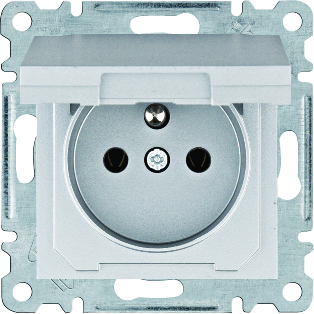 lumina Gniazdo zasilające z uziemieniem i pokrywą, srebrny